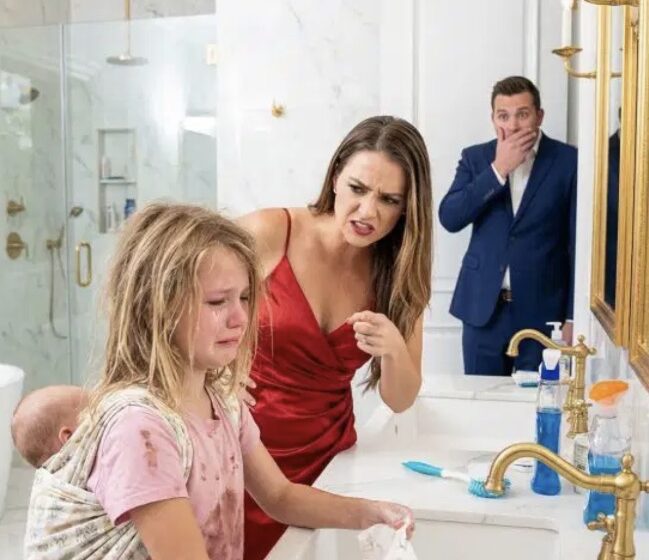 Her small hands were buried in cold water, scrubbing dresses that didn’t belong to her.
