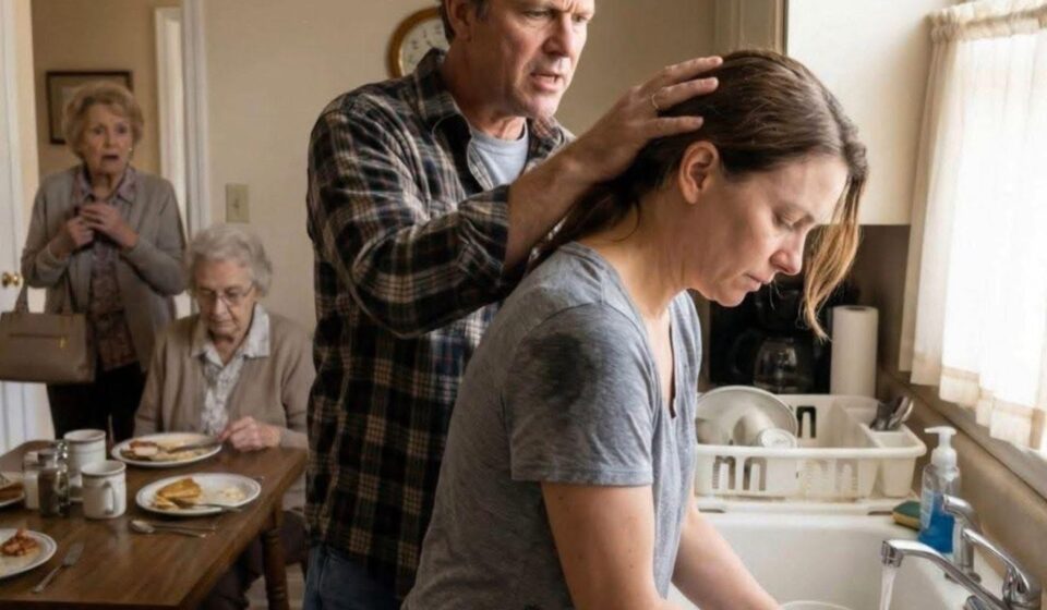 Laura stood at the sink in a thin cardigan that wouldn’t have been warm enough even if the heat were on. Her hands were red and raw-looking, moving mechanically through an endless rotation: rinse, scrub, rinse again. A stack of clean dishes sat in the drying rack beside her, already done but apparently not done enough. Her shoulders were hunched forward, her spine curved in the posture of someone trying to make themselves smaller.