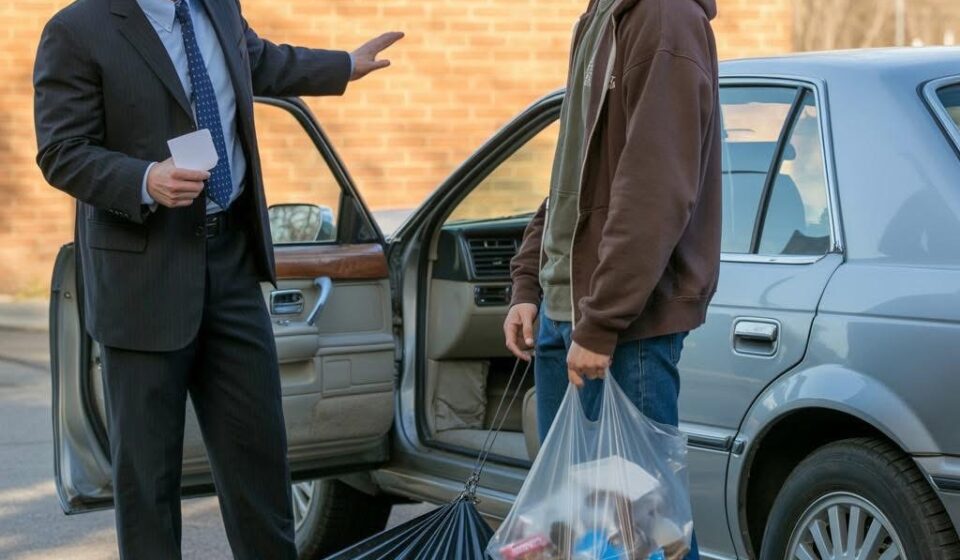 I stared at him, my hands still covered in garbage residue, my stomach empty, my entire life packed into three garbage bags sitting in the trunk of a car that had run out of gas two days ago.