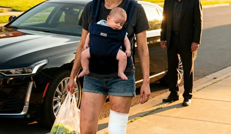 Noah was eleven months old, warm against my hip, completely unaware that his mother felt smaller with every passing day. The grocery bags felt heavier than they should have. The milk knocked against my knee with each step.