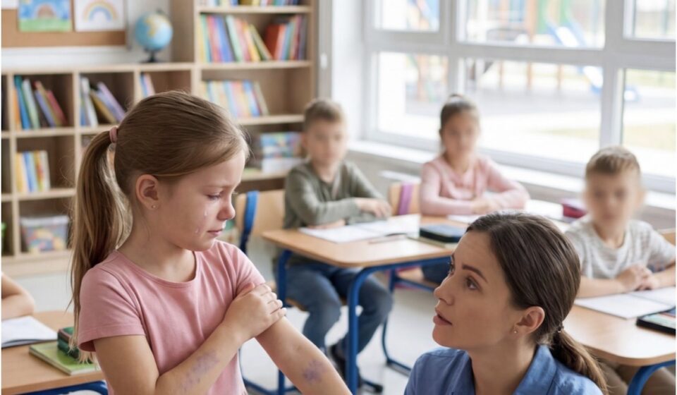 “She Sat Alone and Begged Her Teacher to Stay Silent — Until One Small Injury Exposed Months of Hidden Pain”
